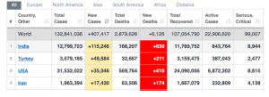 Daily infections have doubled in a little over two weeks, meaning Turkey now tops European countries for daily infections and ranks second worldwide after India, according to data provided by Worldometer.