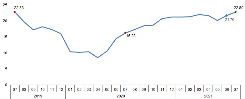 Agriculture-PPI annual change (%), July 2021