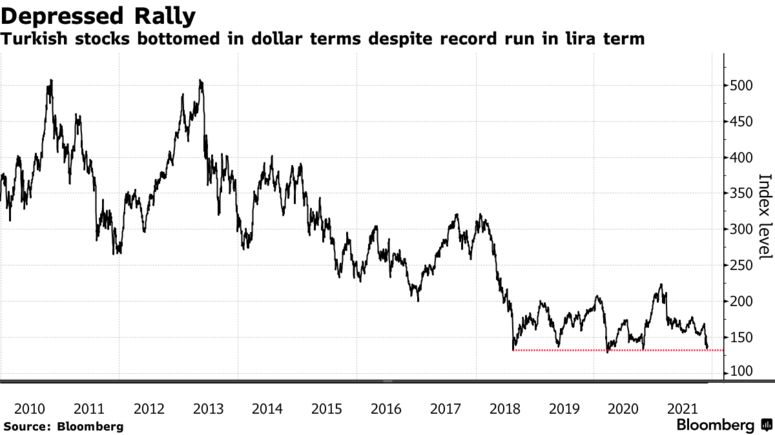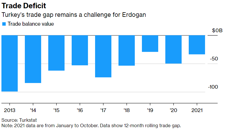 Bloomberg signed analysis point at how Turkey’s President Erdogan is pushing for lower borrowing costs aiming to transform the economy into a job-creation engine to keep him in power when elections come around in 2023 when ordinary Turks are so far paying the price.