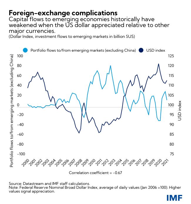 While the global recovery is projected to continue this year and next, risks to growth remain elevated by the stubbornly resurgent pandemic. Given the risk that this could coincide with faster Fed tightening, emerging economies should prepare for potential bouts of economic turbulence.