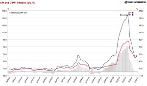 Considering that Erdogan’s pension and minimum wage adjustments will be at least 30-40% before the March 2024 local election, the CBRT’s updated 33% CPI inflation expectation by the end of 2024 does not seem easily achievable.