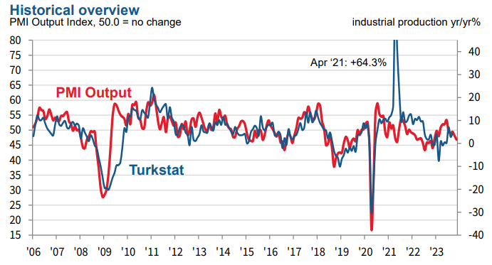 “The latest Türkiye manufacturing PMI data makes for concerning reading as it shows the slowdown in the sector gathering momentum as the year draws to a close. Widespread demand weakness, both at home and abroad, is making it increasingly difficult for firms to secure new business and leading to the scaling back of output, employment and purchasing.”