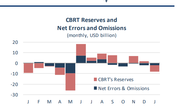 Net errors and omissions item, which recorded capital outflows for the last 5 months, had a capital outflow of 1.9 billion USD in January.