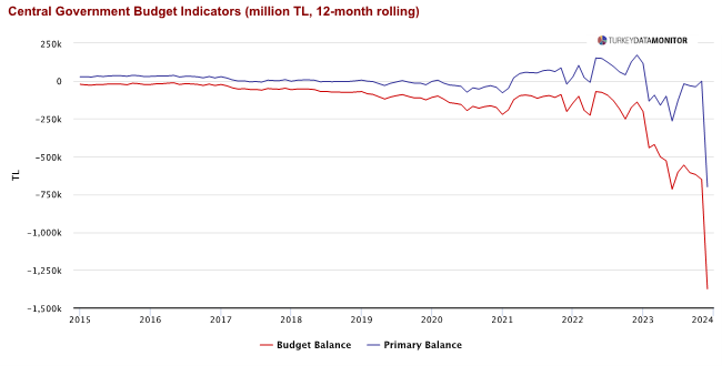 The central government budget balance, which posted a deficit of 75.6 billion liras in November, posted a record deficit of 842.5 billion liras in December. Hence the total budget deficit posted a spike to 1.37 trillion TL in 2023 in the year of the earthquake, widening 864% yoy from 139.1 billion recorded for the whole of 2022.