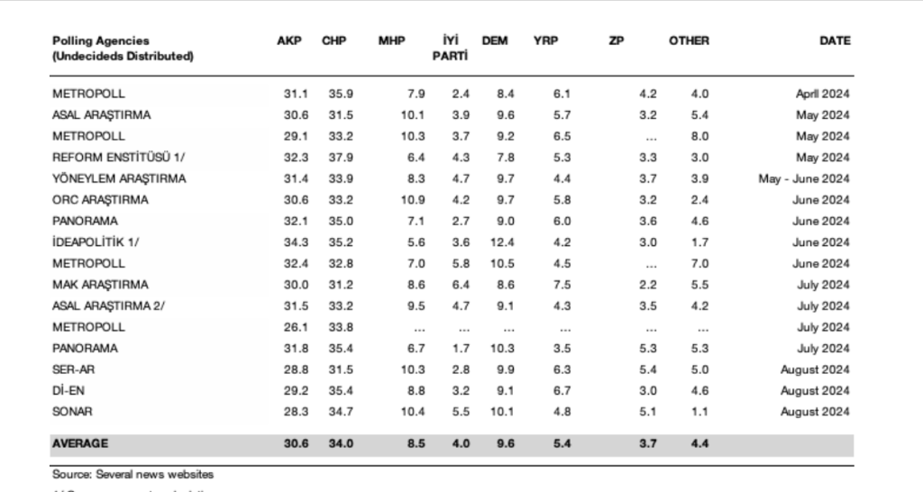 Dİ-EN Research Company conducted the survey with 2000 participants across Turkey between 3-7 August 2024. Chief  Researcher (Ms.) Tacire Baktaş announced the results of poll for the first time on TELE1, a left-leaning anti-AKP private broadcasting station.