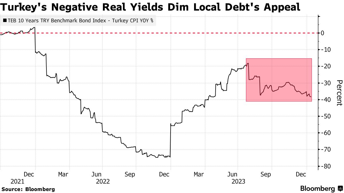 Investors have expressed reservations, including concerns about the high costs of hedging currency risk and the sustainability of the economic team’s policies, hindering further allocation to Turkish assets. In a recent report, JPMorgan suggested that investors should either wait for Turkish yields to rise or for inflation to fall before considering investments in lira bonds.