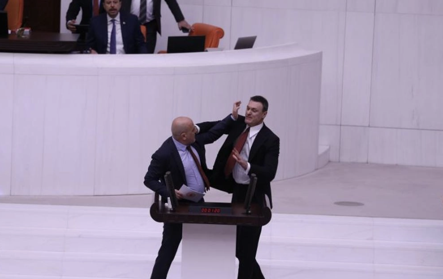 Özalan, a former footballer, walked to the rostrum and shoved Şık to the ground, said an Agence France-Presse journalist in parliament.