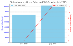 Home sales in Turkey rose to 142,858 units in July 2025, driven by strong demand and mortgage activity. Analysts see the trend as a positive catalyst for XGMYO.