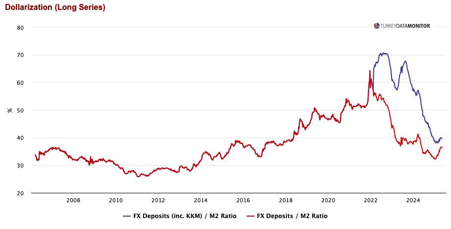 ➢ FX-protected deposit (KKM) balances declined by TRY 29.8 billion (USD 0.9 billion), falling to TRY 596 billion. The cumulative unwind from the August 2023 peak has now reached TRY 2.8 trillion (USD 121.1 billion).