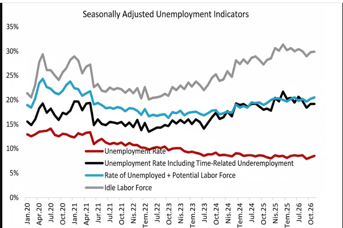 Turkey’s labor market delivered mixed signals in February, with employment increasing but unemployment also rising. Broader measures of labor slack point to weakening momentum, suggesting that the recovery in jobs may be more fragile than headline figures imply.