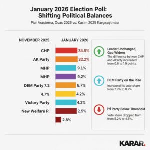 Piar Research’s “Türkiye Political Agenda Survey – January 2026”, conducted in 26 provinces with 2,120 respondents, points to a continued lead for the Cumhuriyet Halk Partisi.