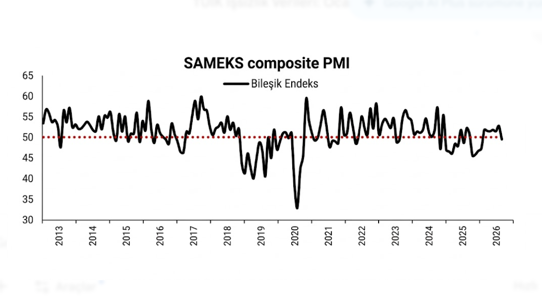 Türkiye’s SAMEKS Composite Index dropped into contraction territory in February 2026, declining 3.3 points to 49.4. While the industrial sector posted a strong rebound, a sharp deterioration in services dragged overall economic activity into slowdown territory, signaling rising downside risks for growth.