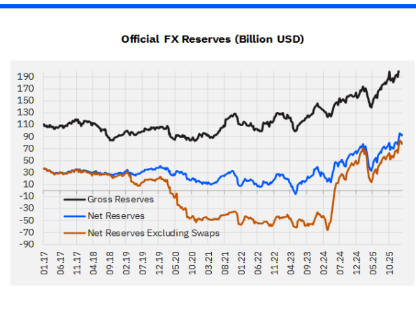 The sustained portfolio inflows have supported reserve accumulation and improved sentiment toward Turkish assets.