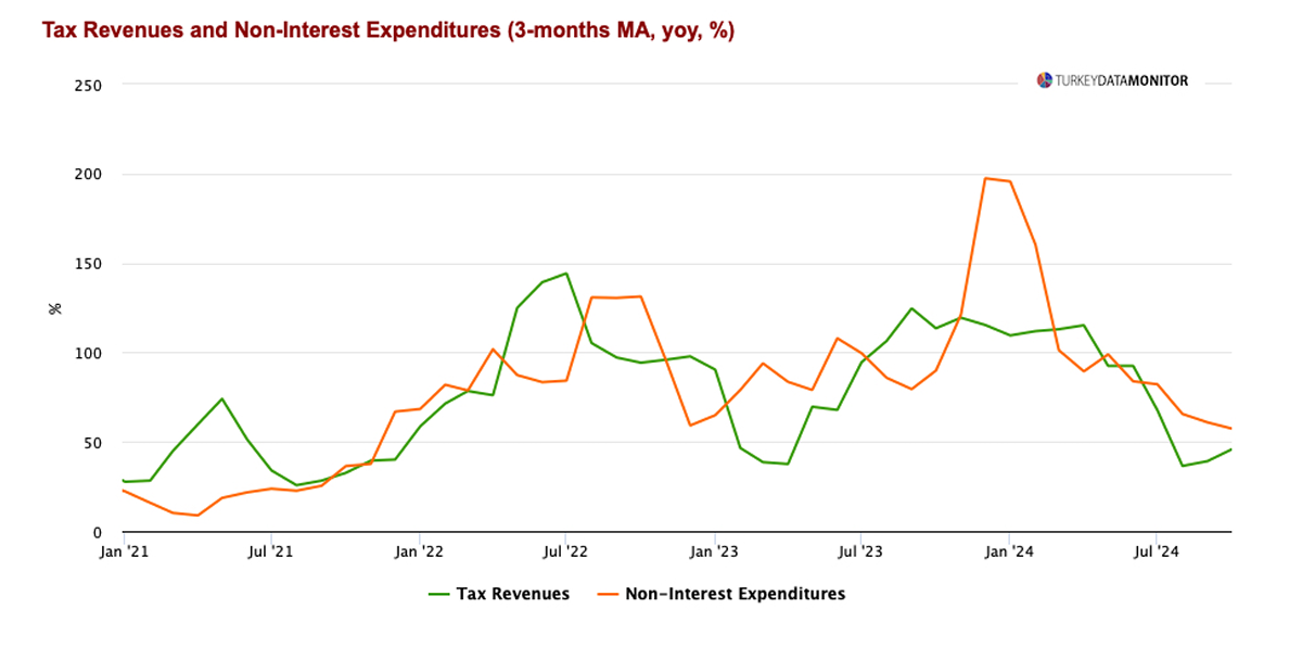 Although the budget deficit continued to widen in October, budget indicators remained in line with the targets throughout the year. The cumulative budget deficit, which reached 1.3 trillion TRY in the January–October period, was only 58.7% of the 2,149 billion TRY target set for the whole year in the medium-term program. The fact that there is ample room in the budget for the rest of the year supports the view that the budget deficit will remain below the targeted level at the end of the year.