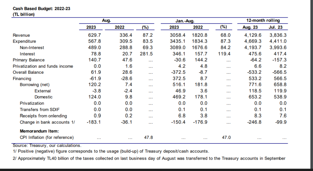 Non-interest expenses are the area where the budget performed extremely well, with an increase of 69%. On the negative side, the 281.5% expansion in interest expenses does not seem to go unnoticed. As a result, the cash budget balance was announced as 61.9 billion TL and the primary balance as a surplus of 140.7 billion TL.