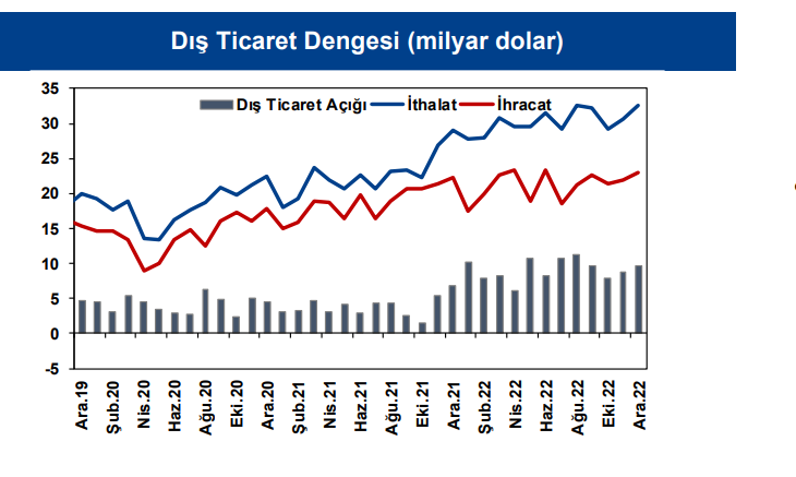 According to the first calculation we made in the light of foreign trade figures, a current account deficit of around 5.4 billion dollars could be given in December; We estimate that this figure may reduce the 12-month current account deficit, which was $45.0 billion in November, to $47.2 billion in December.